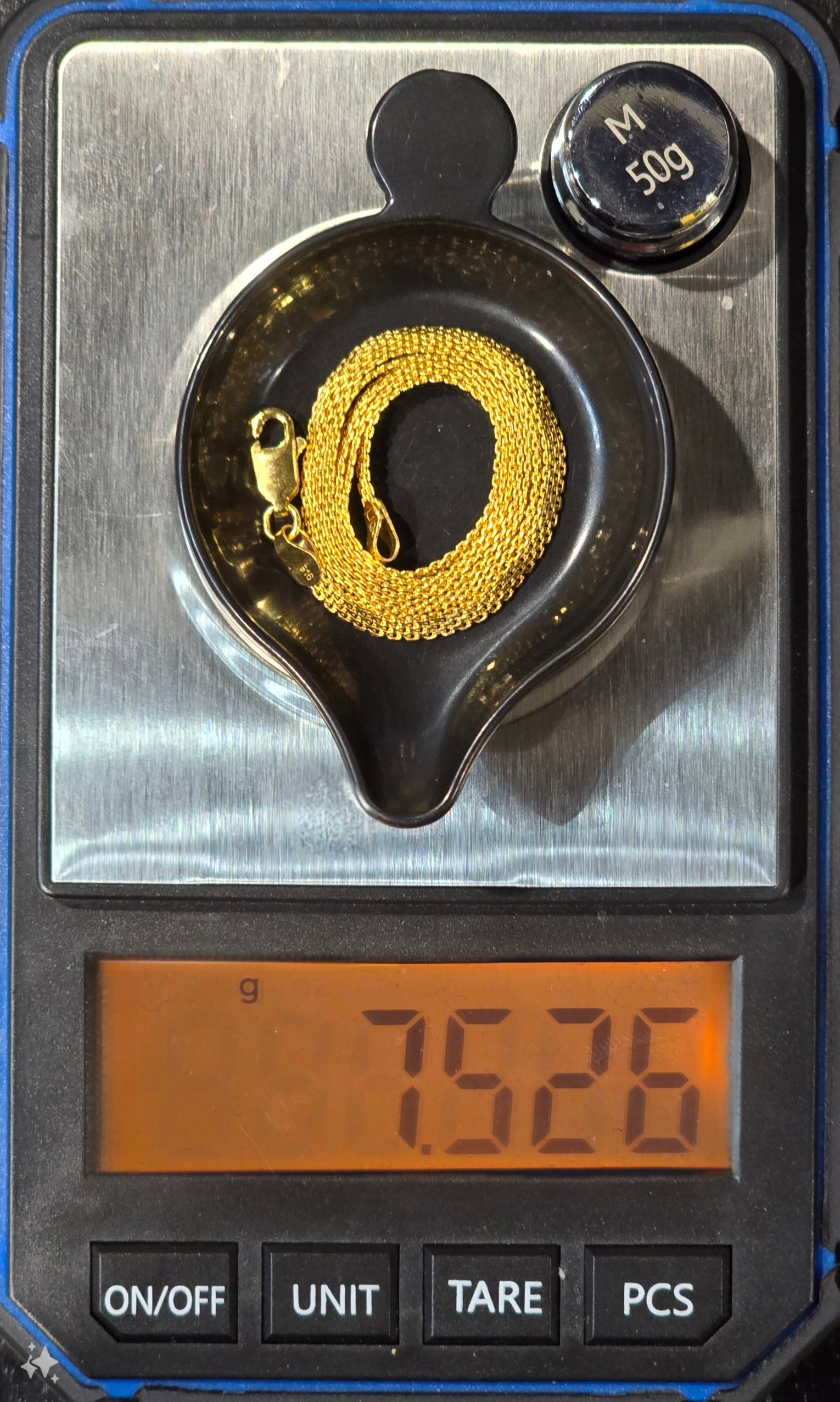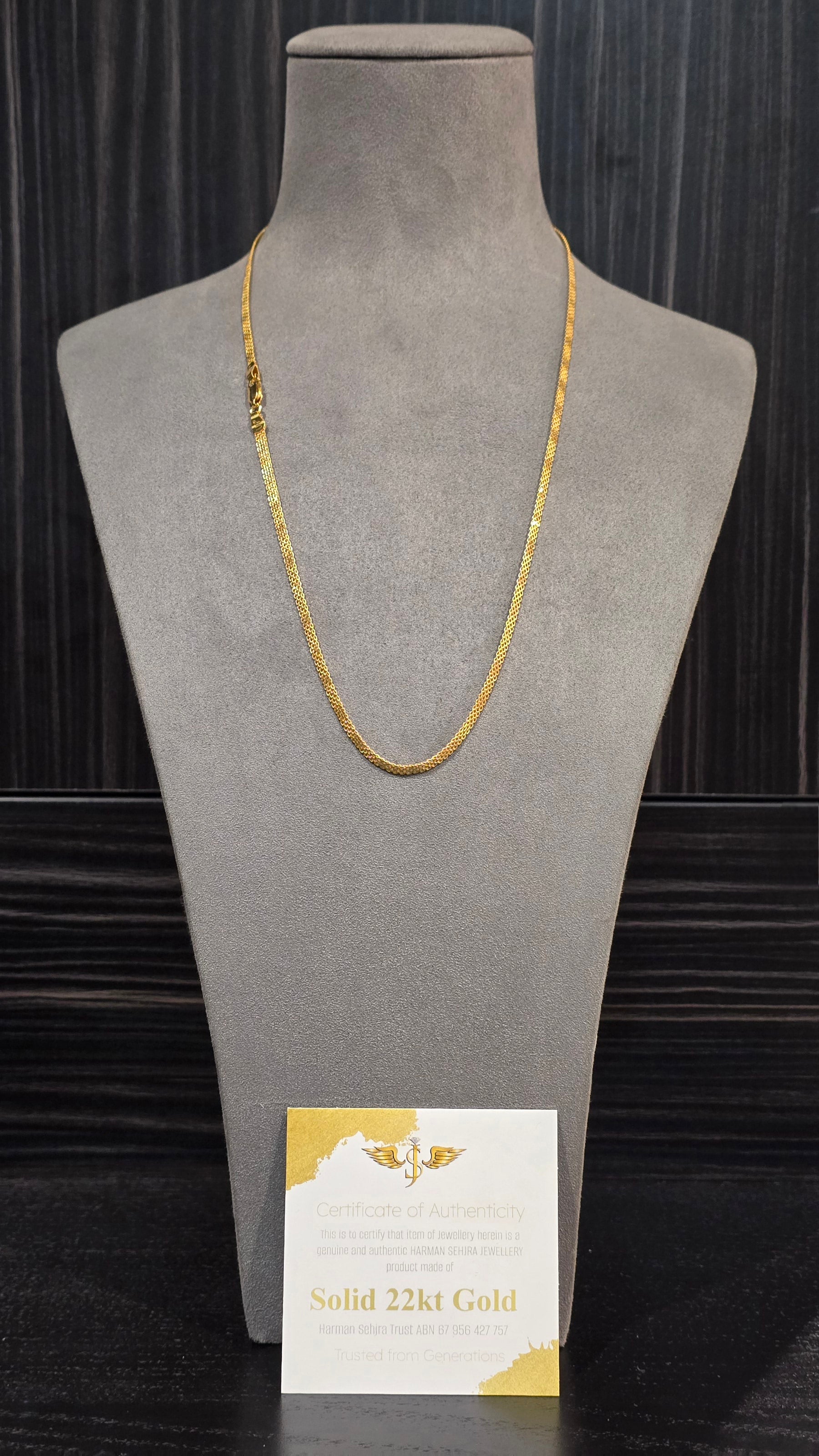 Crafted from the finest 22kt gold, the chain weighs a mere 7.526 grams, ensuring both comfort and style. Its sleek design and impeccable craftsmanship make it a timeless addition to any jewelry collection. Additionally, the Bismark Chain boasts a strong lock, providing security and peace of mind while you wear it.