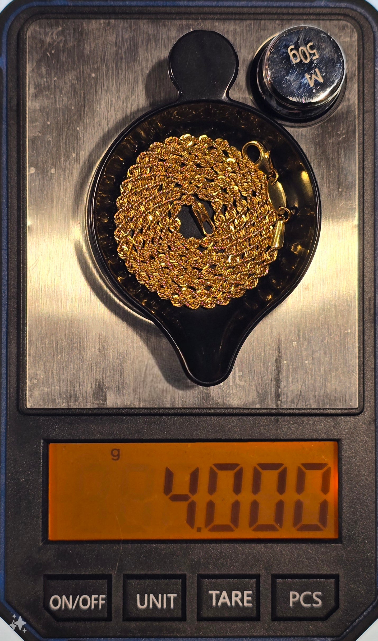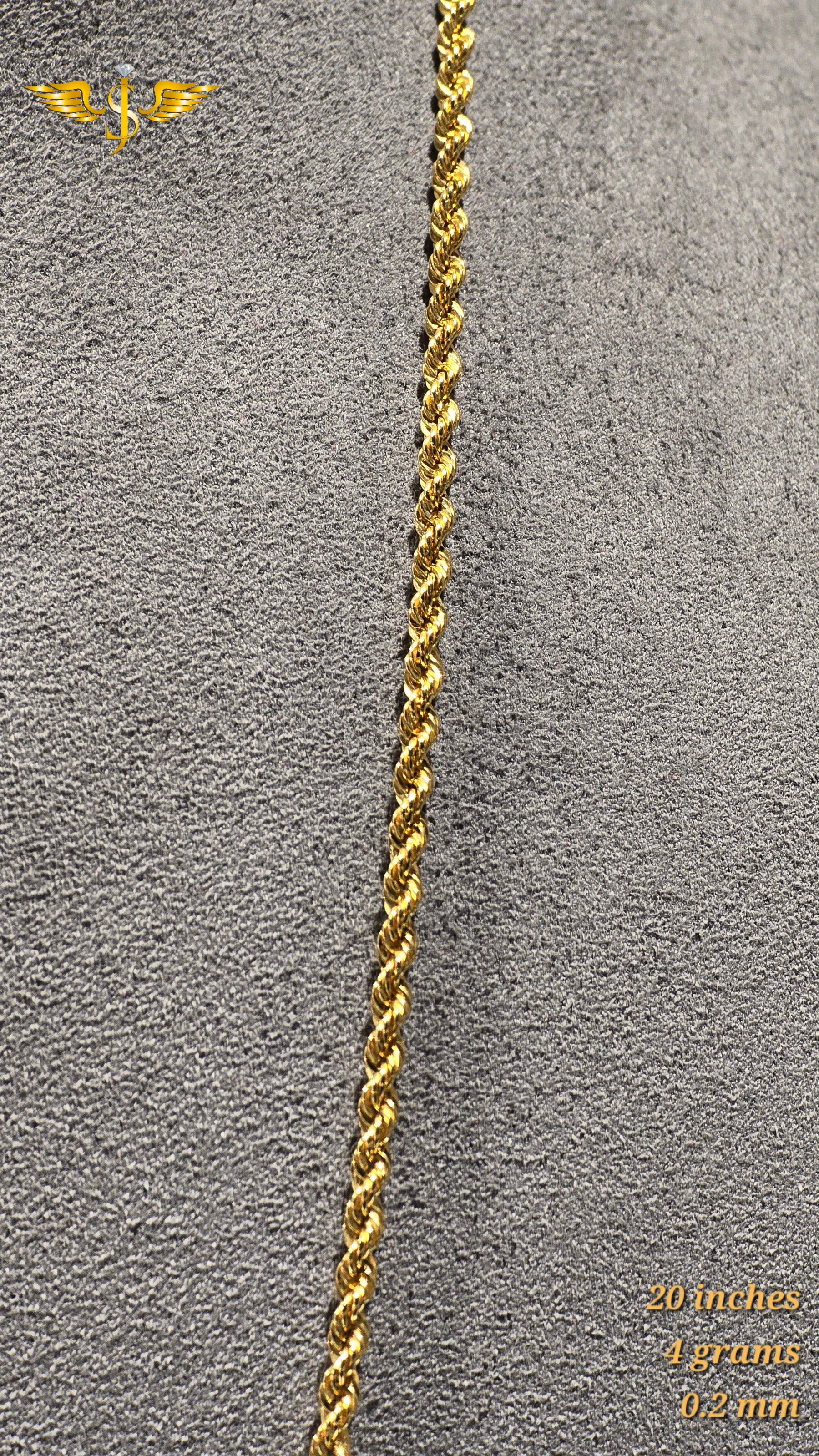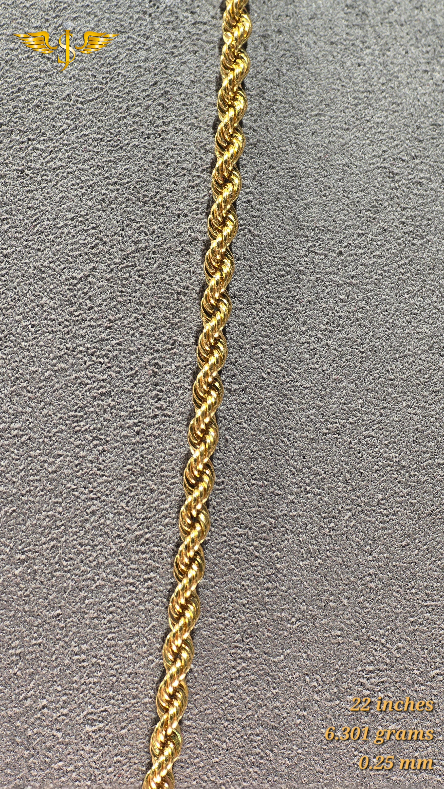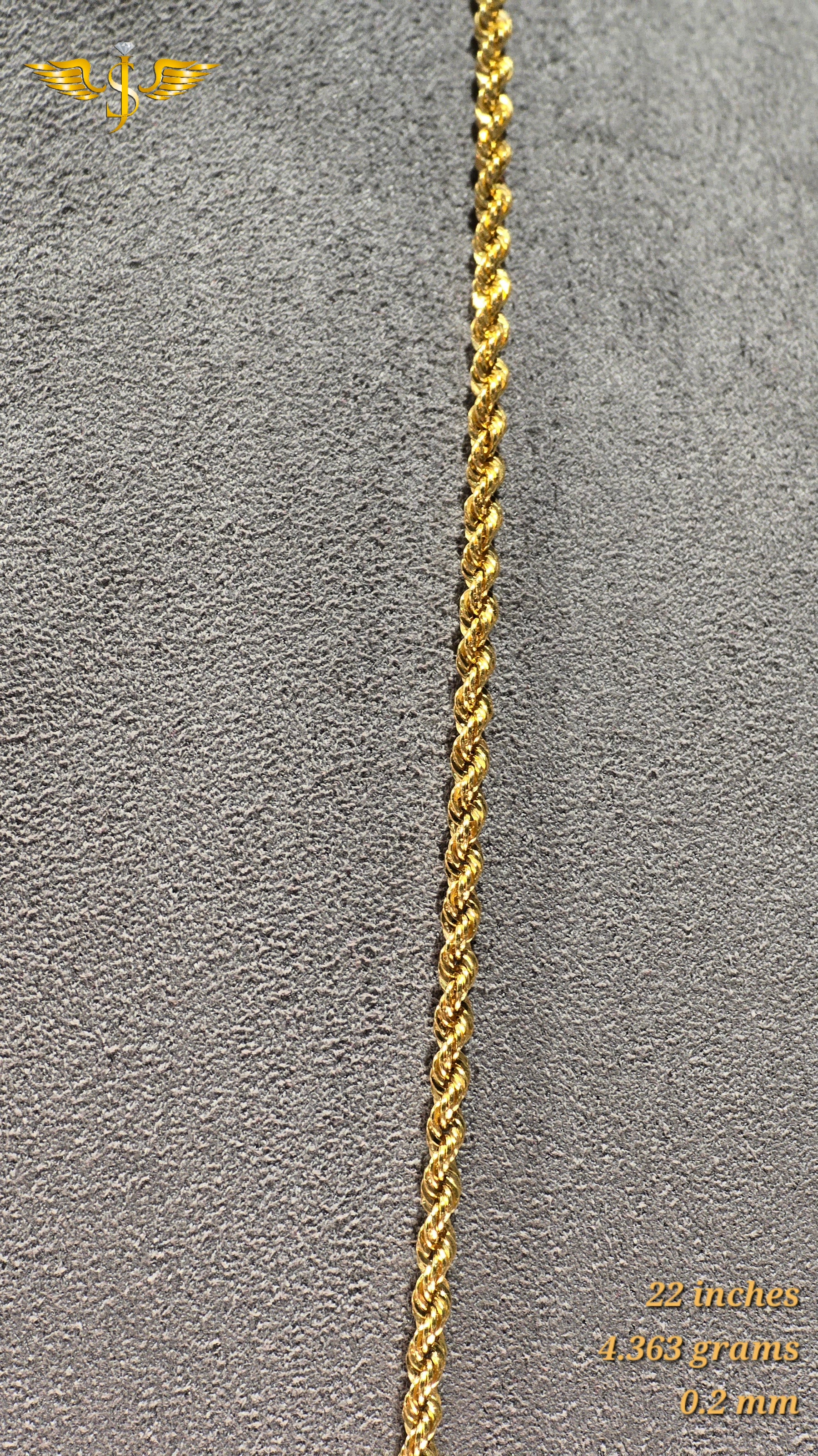 Lightweight 22kt Gold Rope Chain, it strikes the perfect balance between lightweight comfort and enduring quality, making it ideal for daily wear.